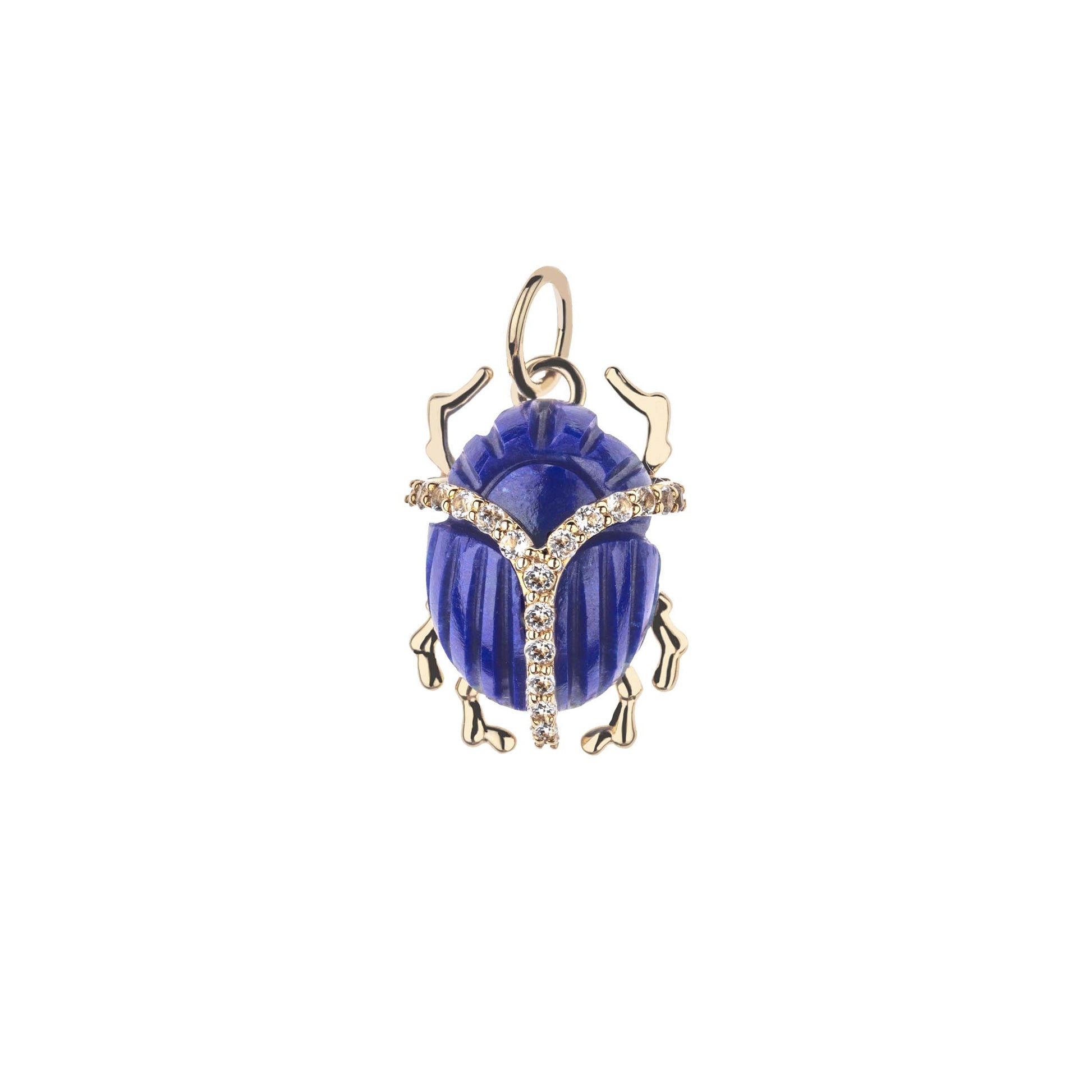 PROTECT Lapis Scarab Pendant in Solid Gold