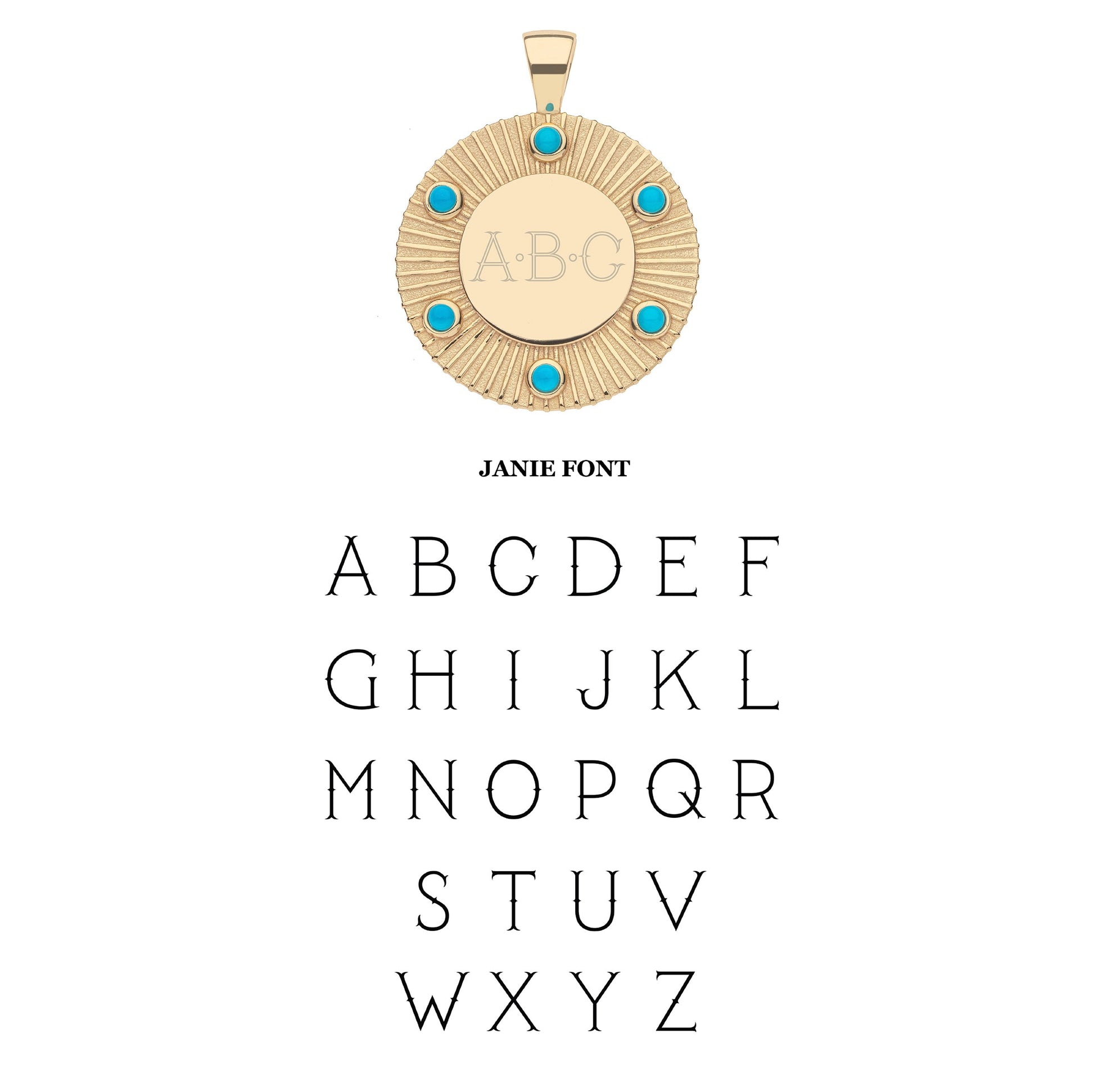• For Janie font, we recommend you use the order of your initials: First, Middle, Last (e.g. ABC). For these fonts, there will be a dot between each letter unless otherwise specified in the order notes.