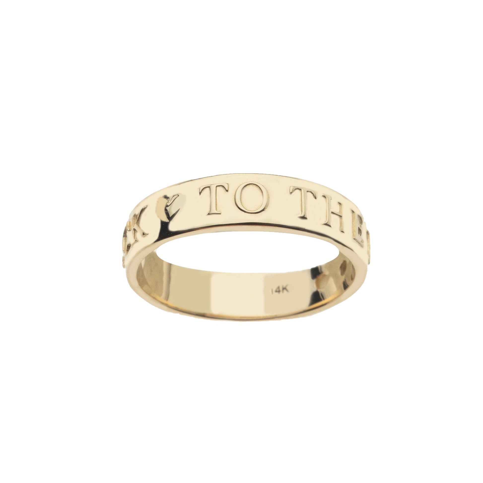 The latest edition to our FOREVER collection, we one of our favorites phrases - "To the Moon and Back" - and wrapped the words around a stackable 14k gold ring, accented with two opal stones. A daily reminder of the love shared between you and someone near and dear to you.
