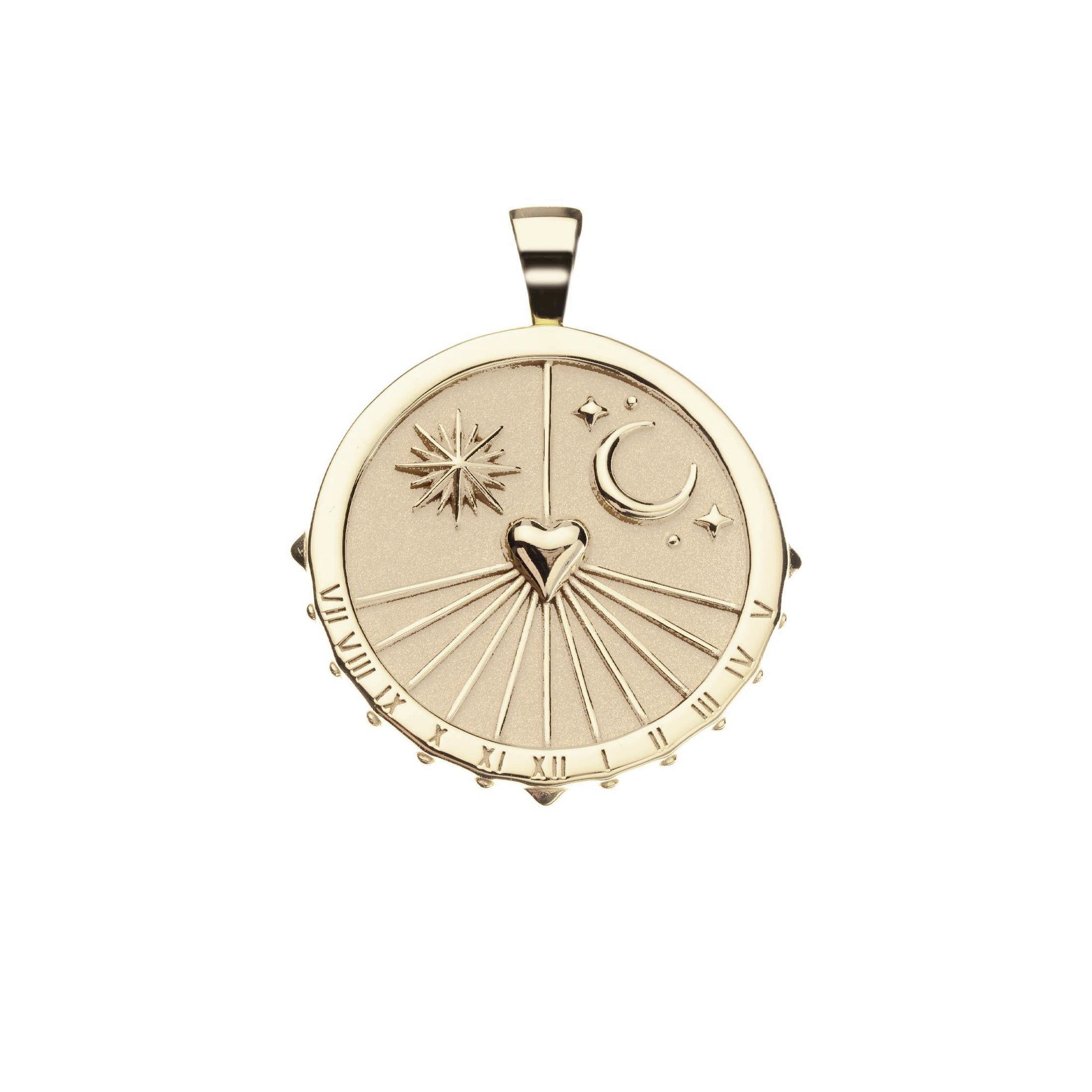 - DOUBLE SIDED: Moon, stars, heart, and sun dial on one side, 16-point star sun dial on the other. Wear either way!