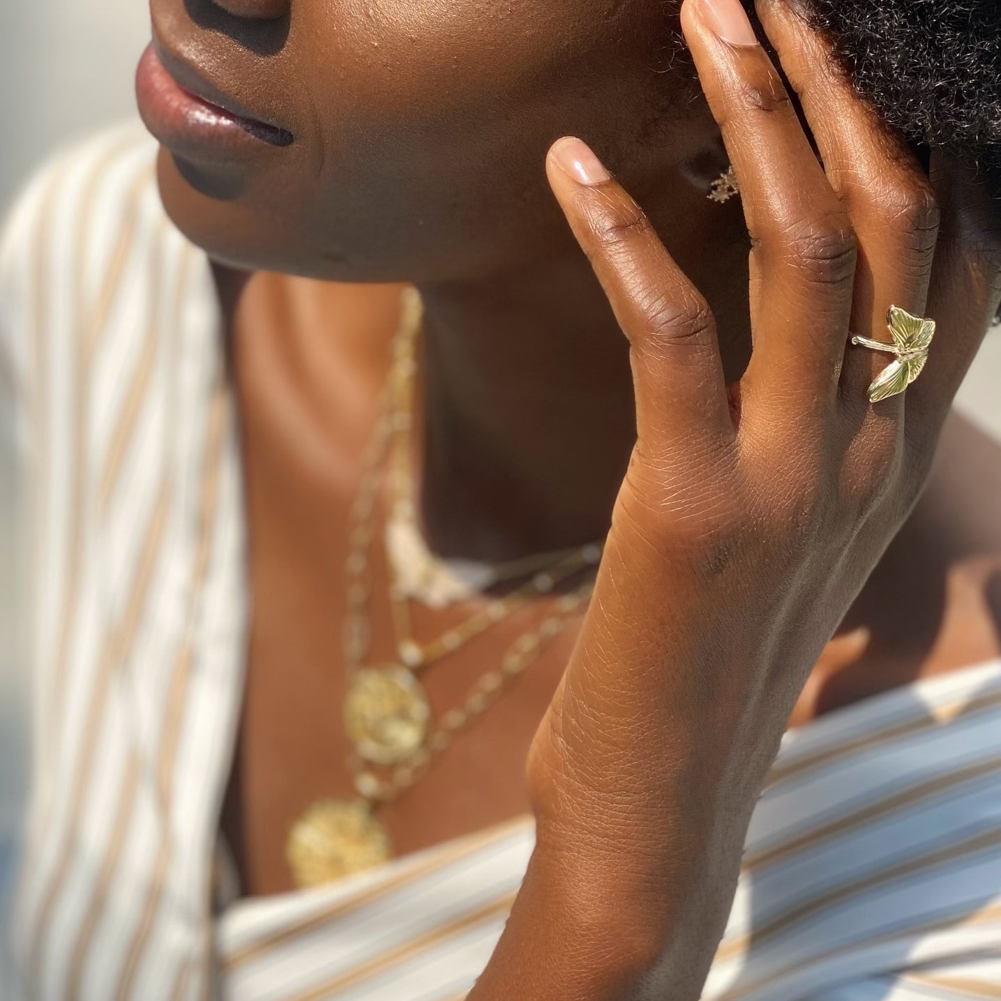 • Butterfly measures approximately 3/4" in wingspan. Ring is 2.2mm thick.