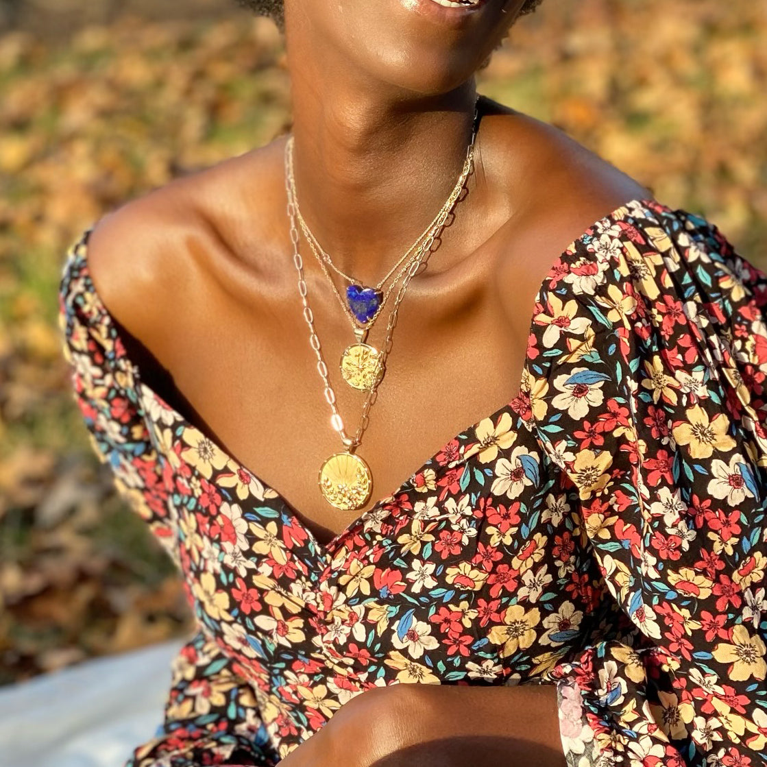 LOVE Lapis Carved Heart Necklace with Gold Setting SALE