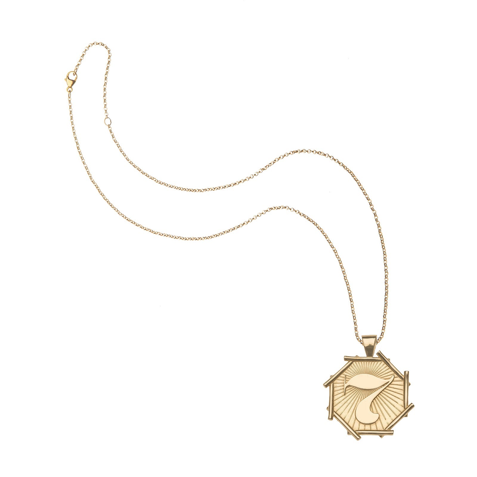 - Pendant made of sterling silver heavily plated in 14k gold.