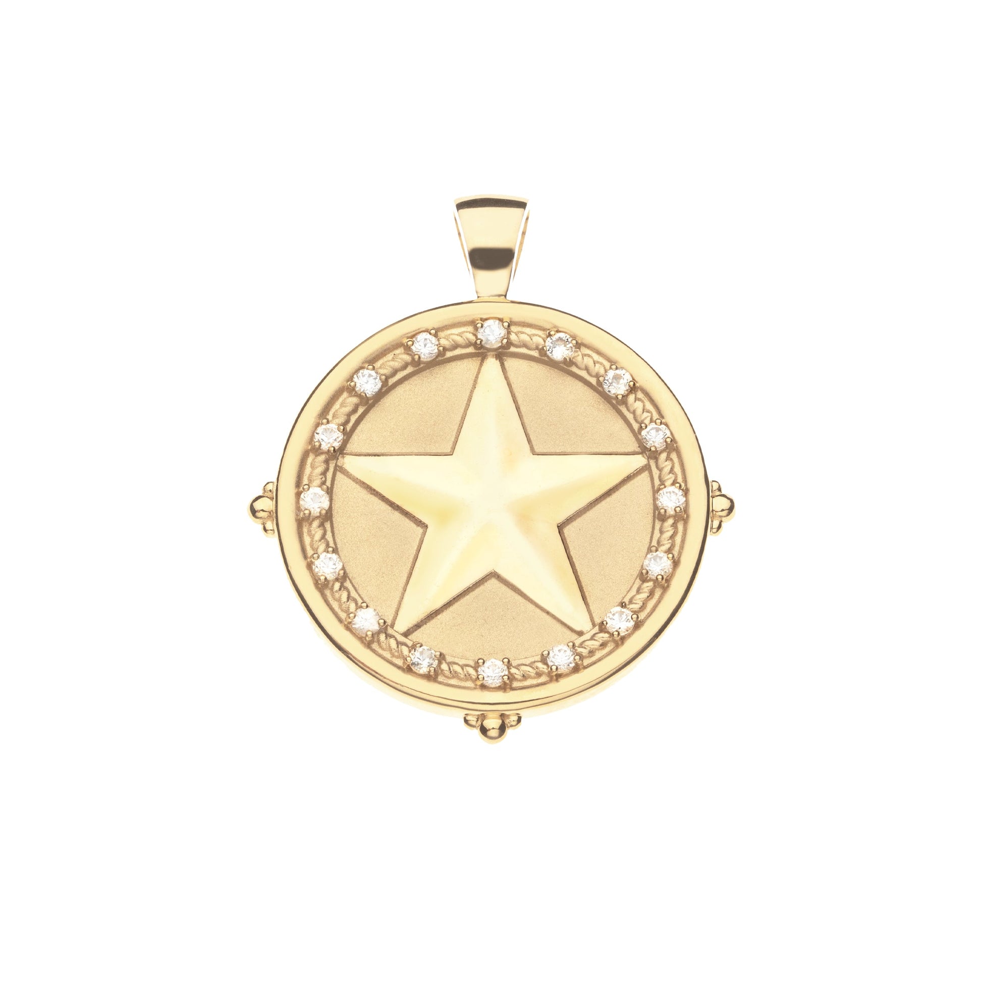TEXAS JW Original Pendant Coin in 14k Solid Gold with Stones